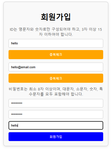 회원가입 제약조건을 모두 통과하면