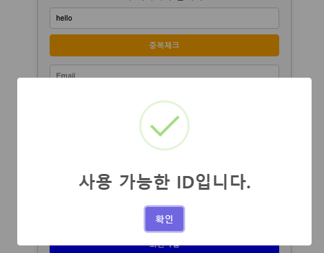ID 중복체크 폼 제출 성공 시